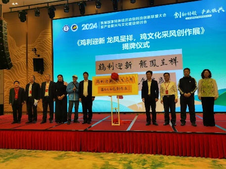 畜牧兽医学科领域的优势及湛江地区丰富的畜禽遗传资源,并预祝国家特种经济动物科技创新联盟大会暨产业振兴与文化建设研讨会取得丰硕成果,为推动我国特种经济动物产业持续健康发展作出重要贡献。随后,领导及专家参加了《中国怀乡鸡——历史文化与科学》的首发仪式及《鸡利迎新 龙凤呈祥,鸡文化采风创作展》揭牌仪式。