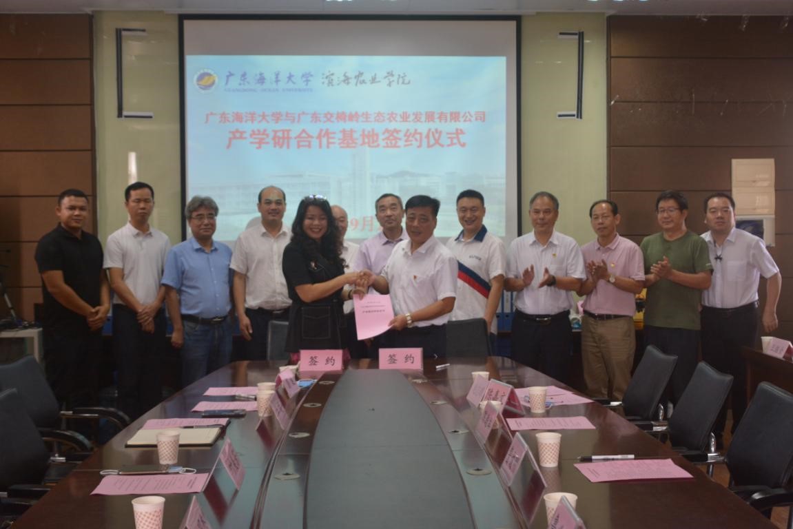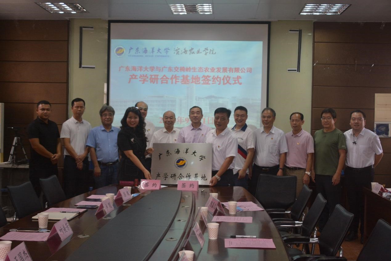党委书记曹俊明教授、科技处处长鲁义善教授,湛江市农业农村局发展规划与乡村产业发展科科长王国杰、湛江市麻章区农业农村与水务局副局长卢聪、湛江市麻章区湖光镇党委副书记邓利,广东交椅岭生态农业发展有限公司总经理叶美芳、副总经彭健、副总经理彭越以及涩里番