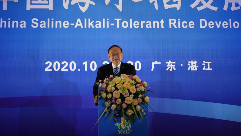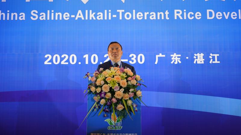 国家耐盐碱水稻技术创新中心耐盐碱水稻育种首席科学家李新奇围绕“杂交海水稻研究与应用”进行主题演讲,从种质挖掘及功能基因作用机理研究、优和组合选育良亲本创制、生理生态机理及调控技术研究、丰产模式构建与示范等方面进行介绍。