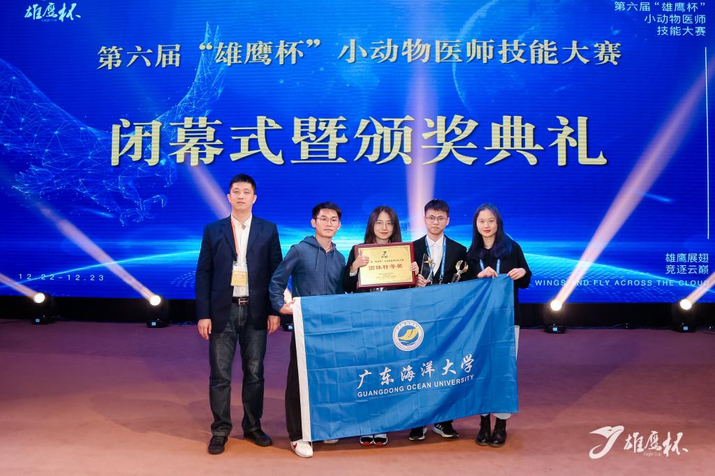 12月22日,由中国兽医学院院长联席会、中国兽医协会联合主办,华南农业大学、新瑞鹏宠物医疗集团联合承办的“第六届雄鹰杯小动物医师技能大赛”在广州华南农业大学拉开帷幕。我校派出以动物医学系主任巨向红教授为领队,姚秋成博士为指导老师,陈丽嘉、章朝坤、吴雨书和黎炳坤为选手的参赛队伍,经过两天的激烈角逐,取得了 “大学生组”团体特等奖、“大学生组”优秀辅导老师特等奖及个人“中国兽医新星奖”的好成绩。