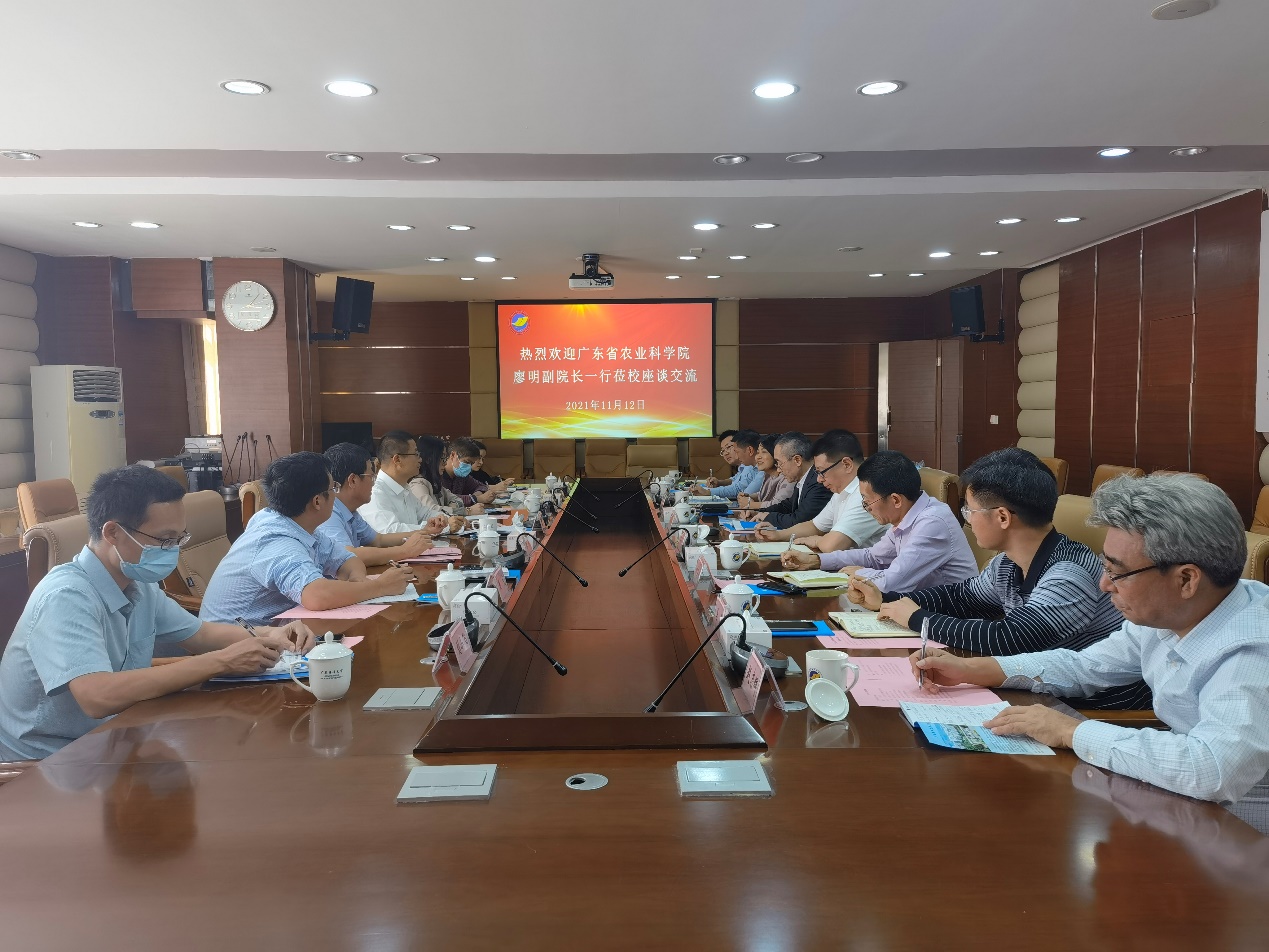 11月12日下午,广东省农业科学院副院长廖明带队来我校就科技合作和研究生联合培养等工作进行交流,我校党委书记曹俊明、副校长谭北平和相关部门领导参加了交流活动。活动由曹俊明书记主持。