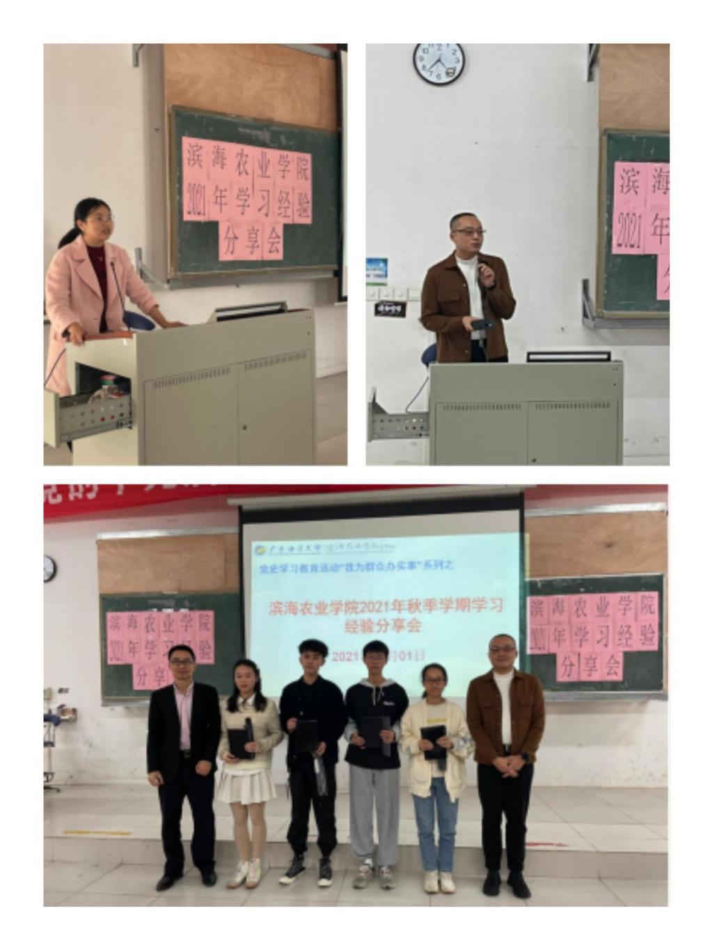 在二教B5201举行“2021年秋季学期学习经验分享会”。会议邀请了动医卓越1191江佳丽、动医卓越1201何泳怡、动医1203林名钦、动科卓越1191钟婉欢和黄泳俊五位不同专业的同学进行经验分享。会议由动医1202班梁雅维同学主持,学院辅导员翟周、王广旭、朱晓清老师以及2021级200多名学生参加了分享会。