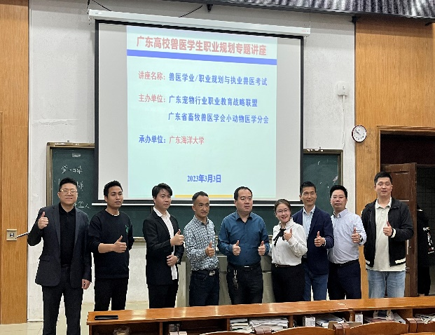 动物医学系特邀请广东宠物行业职业教育战略联盟和广东省畜牧兽医学会小动物医学分会来我校对学生进行了“高校兽医学生职业规划专题讲座”交流活动。本次活动讲师团由广东省畜牧兽医学会小动物医学分会会长、华南农业大学兽医学院石达友教授领衔,同时还有广州它经济人才发展有限公司、领航连锁宠物医院、深圳桥生医疗器械科技有限公司、广州宠加爱科技有限公司及涩里番