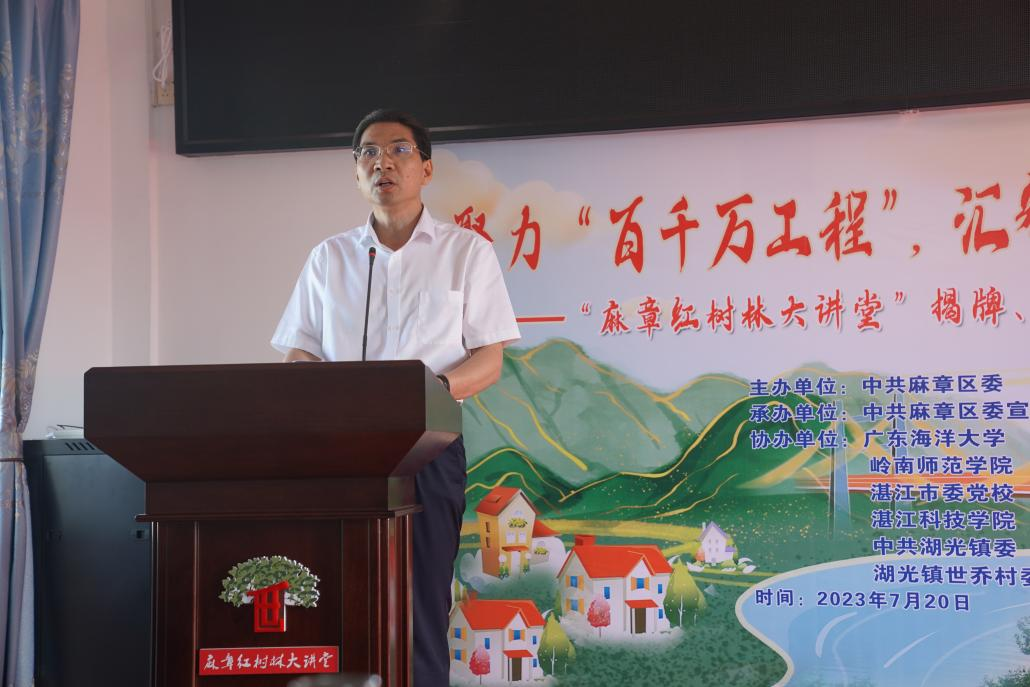 7月20日下午,麻章区“红树林大讲堂”在世乔村举行成立活动,活动由中共麻章区委主办,我校与岭南师范学院、湛江市委党校和湛江科技学院等协办。我校党委副书记林晓敏、科技处处长颜云榕及涩里番