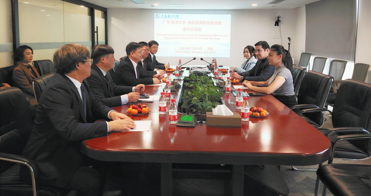 1月24日下午,乌兹别克斯坦-中国投资论坛前夕,为了落实中乌两国元首签署并发表的《中华人民共和国和乌兹别克斯坦共和国联合声明》、《中国-中亚峰会西安宣言》和《中国-中亚峰会成果清单》以及习近平总书记在中国-中亚峰会上的主旨讲话精神,我校党委书记杨洲应邀与乌兹别克斯坦共和国农业部办公厅主任Anvar Ubaydullaev在深圳举行会谈。国际交流与合作部部长陈进军、涩里番
