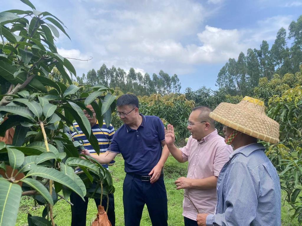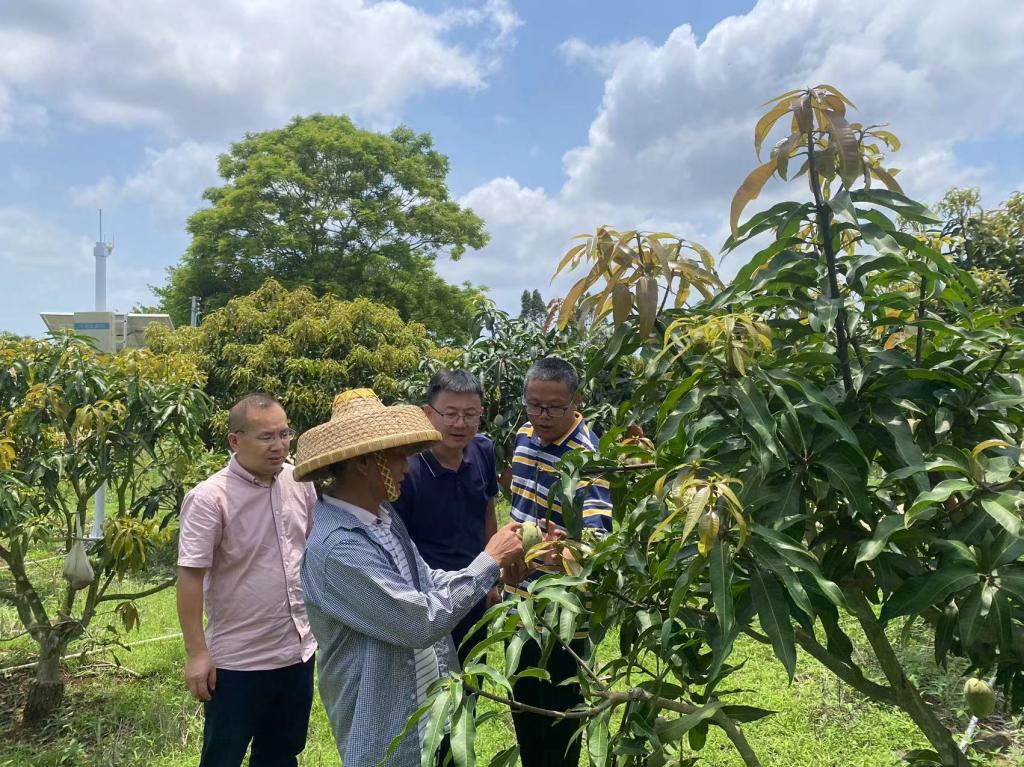 调研组在公司产业发展部和种植业部相关负责人的陪同下,先后到芒果种植园、芒果包装加工园区等地就芒果种植、加工以及产业技术瓶颈等问题实地调研。双方围绕“百千万工程”,以芒果病虫害防治、有机种植技术、花期寒潮冻害及采后果实保鲜等为主题进行深入交流与探讨,努力实现科技赋能芒果产业发展,推动“双百行动”走深走实。