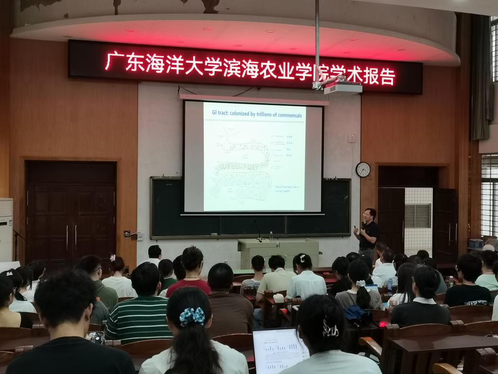 副院长沈雪峰教授主持。科学技术部副部长巨向红教授、动物医学系、动物科学系教师、研究生及本科生约100余人参会。
