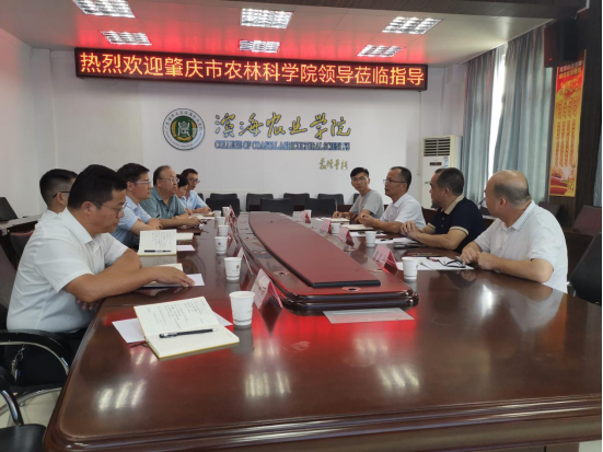 的接待表示感谢,希望双方在人才培养、科研合作、社会服务等方面,加强合作交流。最后,马驿总结,学院在畜禽养殖产业发展领域有强大的技术力量,包括品种繁育、营养饲料、环境控制及粪污资源化利用、动物保健等方面,能够助力肇庆市畜禽产业发展,并为肇庆市农林科学院输送高水平的专业技术人才。