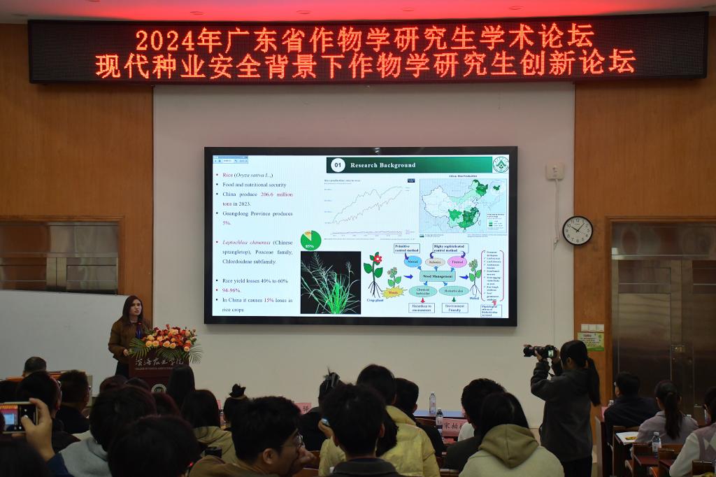 、仲恺农业工程学院、岭南师范学院以及广东海稻红农业科技有限公司等专家与企业家围绕种业安全、粮食安全等前沿领域,带来了精彩纷呈的学术报告。他们深入浅出的讲解赢得了在场师生的阵阵掌声。来自福建农林大学、华南农业大学等国内高校的28位硕士研究生也积极分享了各自的研究成果。