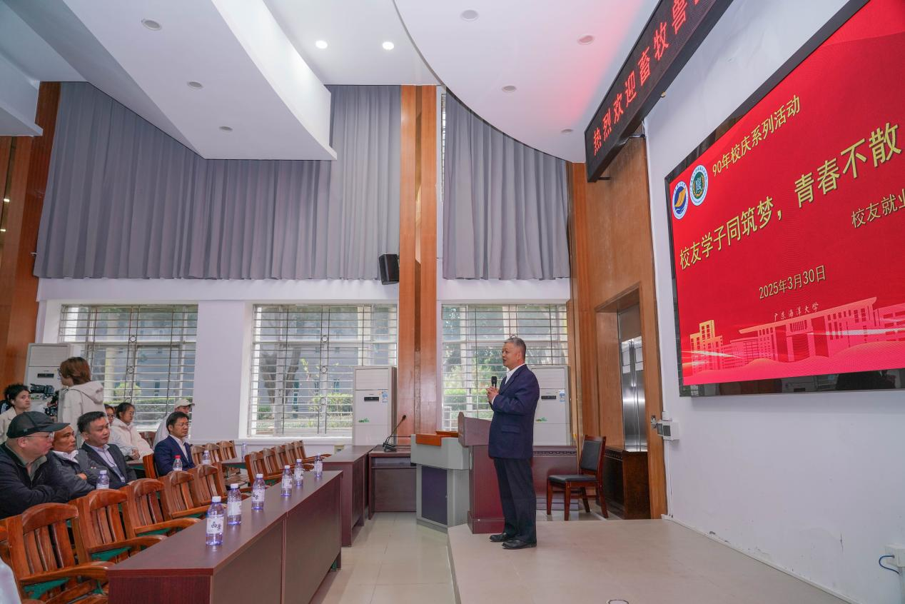 校友代表饶国万(广东天山药业董事长)与同行返校的校友们都结合自身创业历程,从行业趋势、职业素养、终身学习等角度分享经验,强调“实践出真知”的重要性,并呼吁学子们关注行业动态,培养创新思维互动交流,共绘未来蓝图。