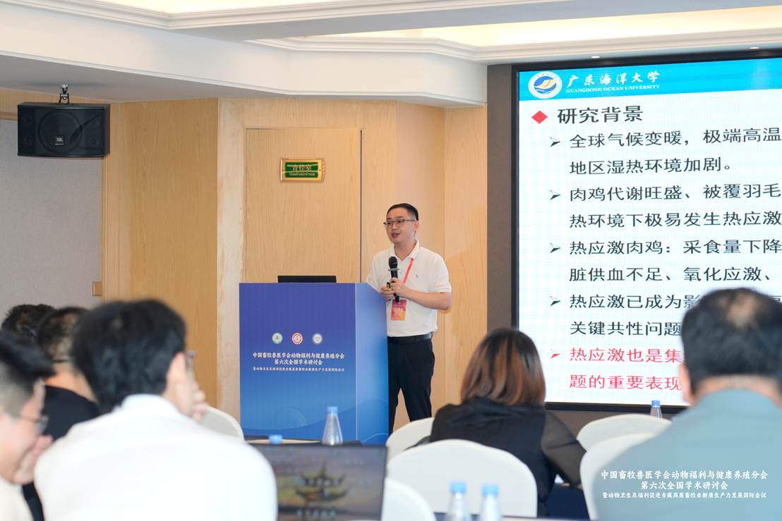 会议期间,举行了分会换届选举工作,杜炳旺当选分会发展顾问,刘文超当选常务理事,林君媛当选理事。学术研讨会邀请了70余位国内外专家学者、行业代表、学术期刊编辑及研究生作会议报告。刘文超作了题为《海藻提取物促进湿热环境下肉鸡健康养殖研究进展》的报告,系统介绍了我校畜牧学科历史沿革、科研特色及海藻提取物调控肉鸡器官健康的研究进展。杜炳旺主持了7月5日下午的学术报告,刘文超主持了7月6日上午的学术报告。