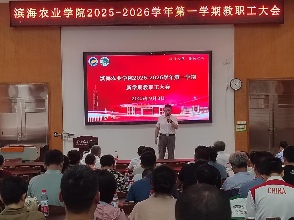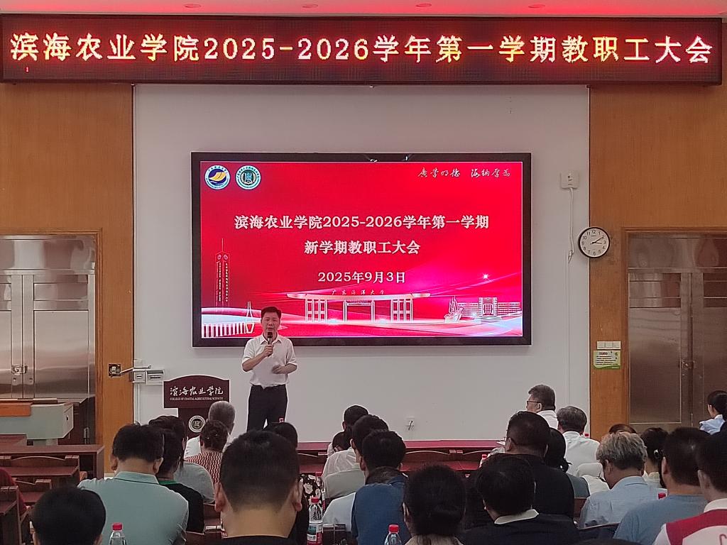 于兴农楼109会议室召开新学期全院教职工大会。会议由学院党委书记郑殿峰主持。