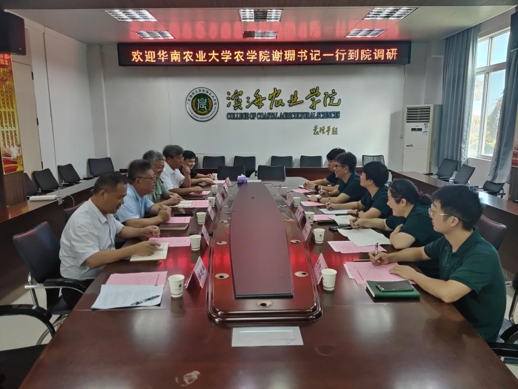 调研交流。学院党委书记郑殿峰、副书记王继全、副院长沈雪峰、国家耐盐碱水稻技术创新中心华南中心(以下简称“华南中心”)副主任江行玉、农学系主任薛迎斌及教师代表在兴农楼419室进行了座谈交流。会议由郑殿峰主持。