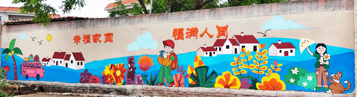 此次活动以艺术赋能乡村振兴,通过美化村容村貌,为西挖村打造宜居宜游的乡村新景。学子们充分发挥专业优势,以青春的色彩与激情的笔触,生动描绘了乡村振兴战略下西连镇“奋进百千万”行动举措,展现了乡村的丰收喜悦和诗意栖居。作品以徐闻北热带风情为基调,以人和景美的风土为内涵,突现“幸福家园、福满人间”立意,创新运用鸡蛋花、凤凰花、富贵叶、吉祥鸟等本土元素,结合瓜果花香、鸢飞鸟鸣的乡村美景,谱绘出一幅总长80米、面积120平方米的巨幅画卷,呈现“花开富贵”“和美西挖”的和美盛景。作品立意深远、格调高雅、色彩明艳、形象生动,一经完成便吸引众多村民与游客驻足观赏,获得高度评价和赞美。