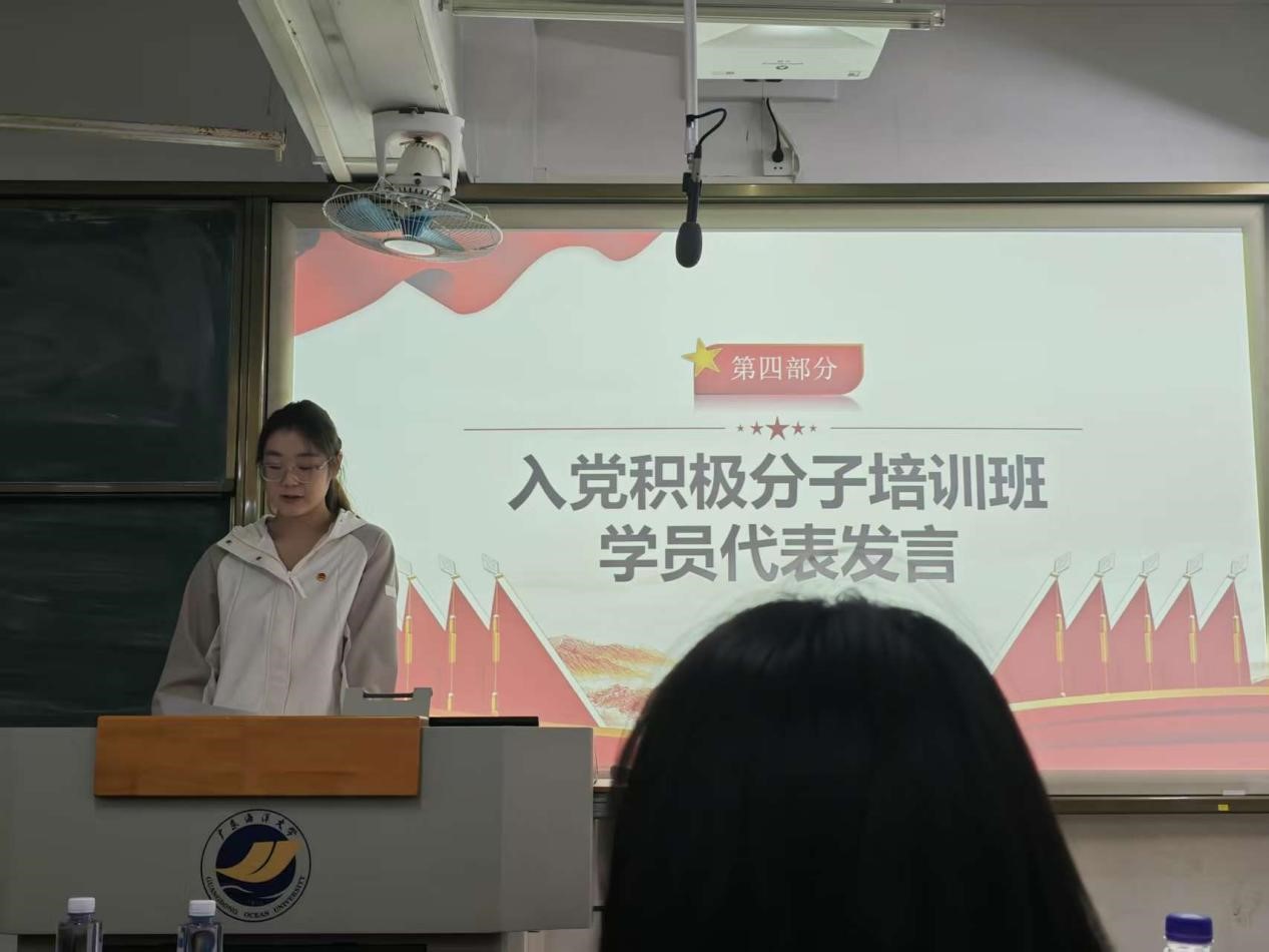 刘斌给各位学员介绍本次培训班的培训方案和注意事项,明确学习纪律与相关要求,确保培训工作规范有序开展,助力学员高效参与培训、学有所获。学员代表硕042509班王孟媛表示,将以此次培训为新起点,把理论学习成果转化为实际行动,在学习和生活中发挥先锋模范作用,积极向党组织靠拢。